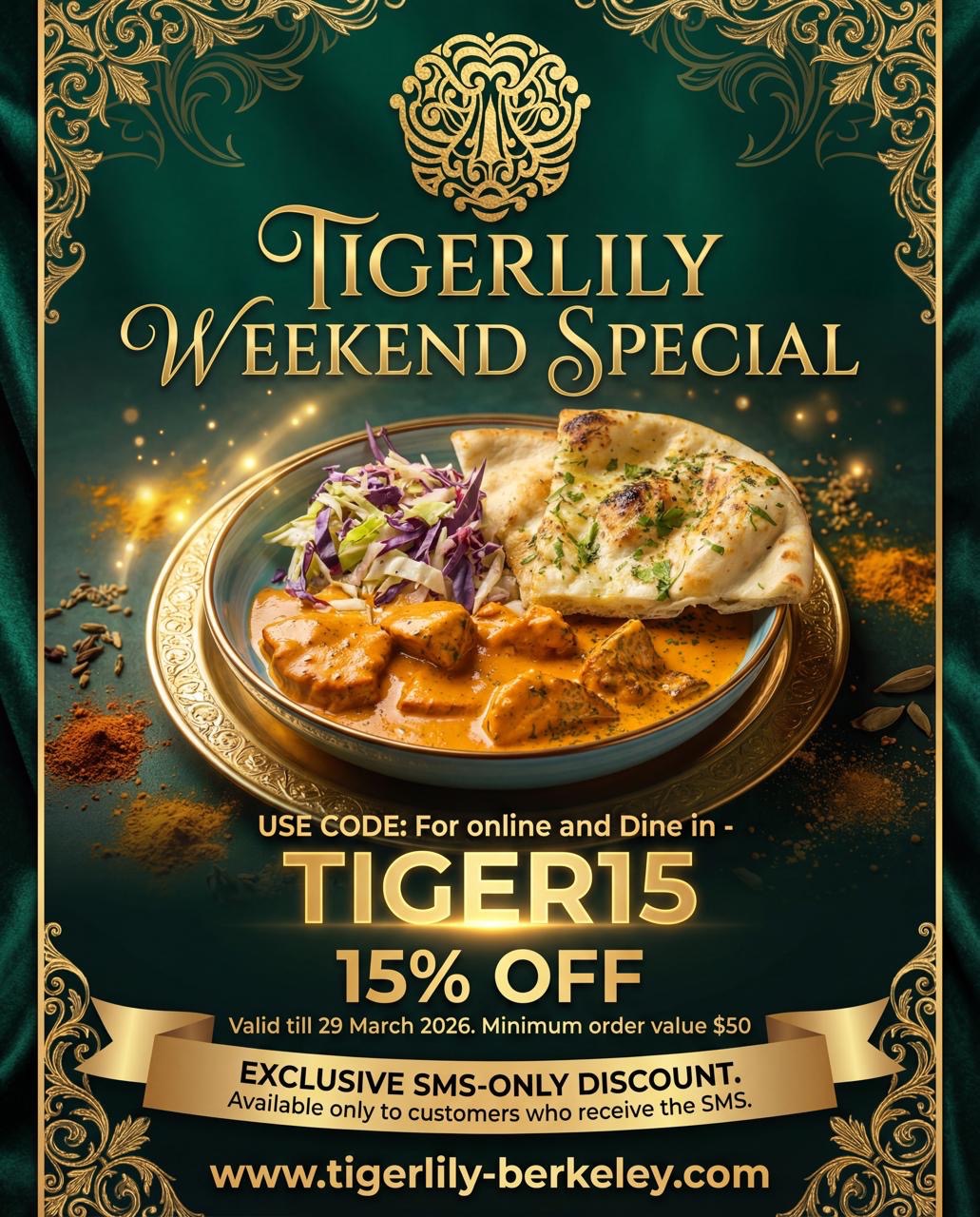 Step into a world of bold flavors and unforgettable experiences at Tigerlily. Our menu blends the rich traditions of Indian cuisine with a creative, modern twist, offering a diverse selection of both authentic and fusion dishes. Whether you’re enjoying a meal in our inviting dining area or relaxing at the bar, we aim to deliver an exceptional culinary journey. Join us for great food, drinks, and a warm atmosphere—where every visit feels like a celebration.